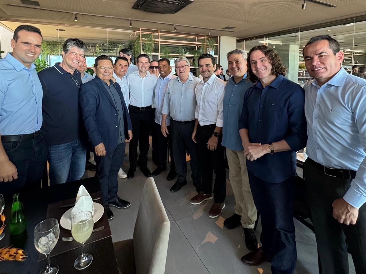 Na foto, a nata do PIB eleitoral da Paraíba: João Azevêdo, o vice-governador Lucas Ribeiro, Hugo Motta, os senadores Veneziano Vital do Rêgo e Efraim Filho, o prefeito e vice da Capital paraibana, Cícero Lucena e Leo Bezerra, e o presidente da Assembleia Legislativa, Adriano Galdino.